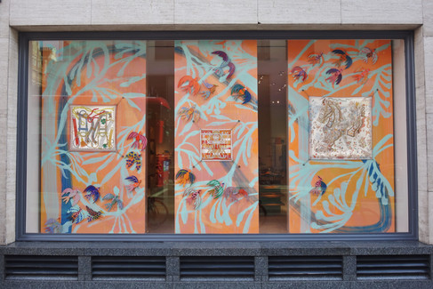 Hermes on Bond Street in Mayfair, London presents A Line in Motion in collaboration with artist Studio Lenca continuing with their vision of supporting creatives to bring to life seasonal collections and showcasing art within the window spaces...this colourful concept features dynamic movement with a kinetic sculpture and playful images from the artists hand drawn style!